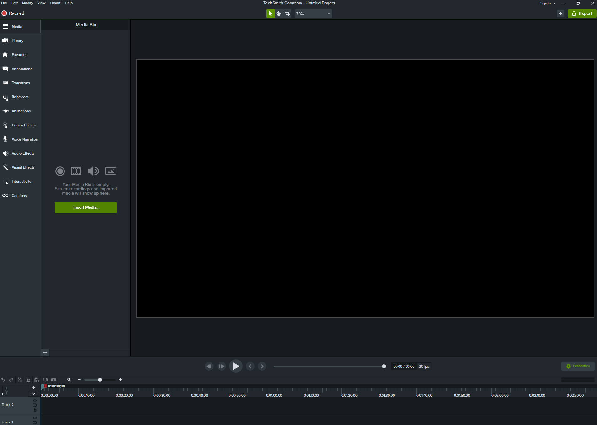 14.  TechSmith Camtasia 프로그램은 다음과 같이 구성을 가지고 있다.