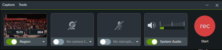 프로그램 좌측 상단에 Record 를 누르면 다음과 같이 녹화가 가능하다.