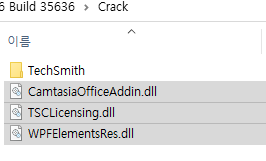 10. 그리고 (9)에서 설명했던  3개의 파일을  Camtasia 2021 폴더에 그대로 옮겨준다