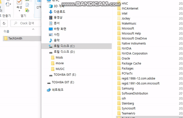 11. 그리고 아까 다시 Crack 폴더로 돌아오면 TechSmith 폴더가 보일것이다.