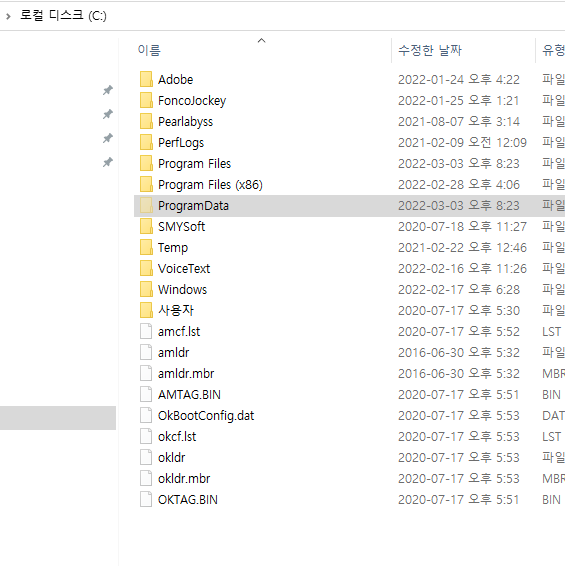 12.  로컬 디스크(c) > ProgramDate 에 들어가서 폴더채로 옮겨주면 된다.